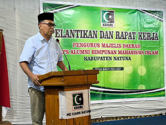 Ketua KAHMI yang baru dilantik periode 2022 - 2027, Daeng Ganda Rahmatullah dalam sambutanya menyampaikan terimakasihnya atas kepercayaan dan amanah yang diberikan untuk memimpin KAHMI Kabupaten Natuna.